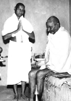 In 1947, Muktananda went to Ganeshpuri to receive the darshan of Bhagavan Nityananda, who had originally inspired Muktananda's search for God. He received shaktipat initiation from him on August 15 of that year. Muktananda often said that his spiritual journey did not truly begin until he received shaktipat from Nityananda. He described it as a profound and sublime experience. For the next nine years, Muktananda lived and meditated in a small hut in Yeola. He wrote about his sadhana and kundalini-related meditation experiences in his autobiography.